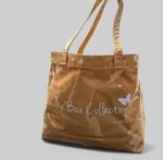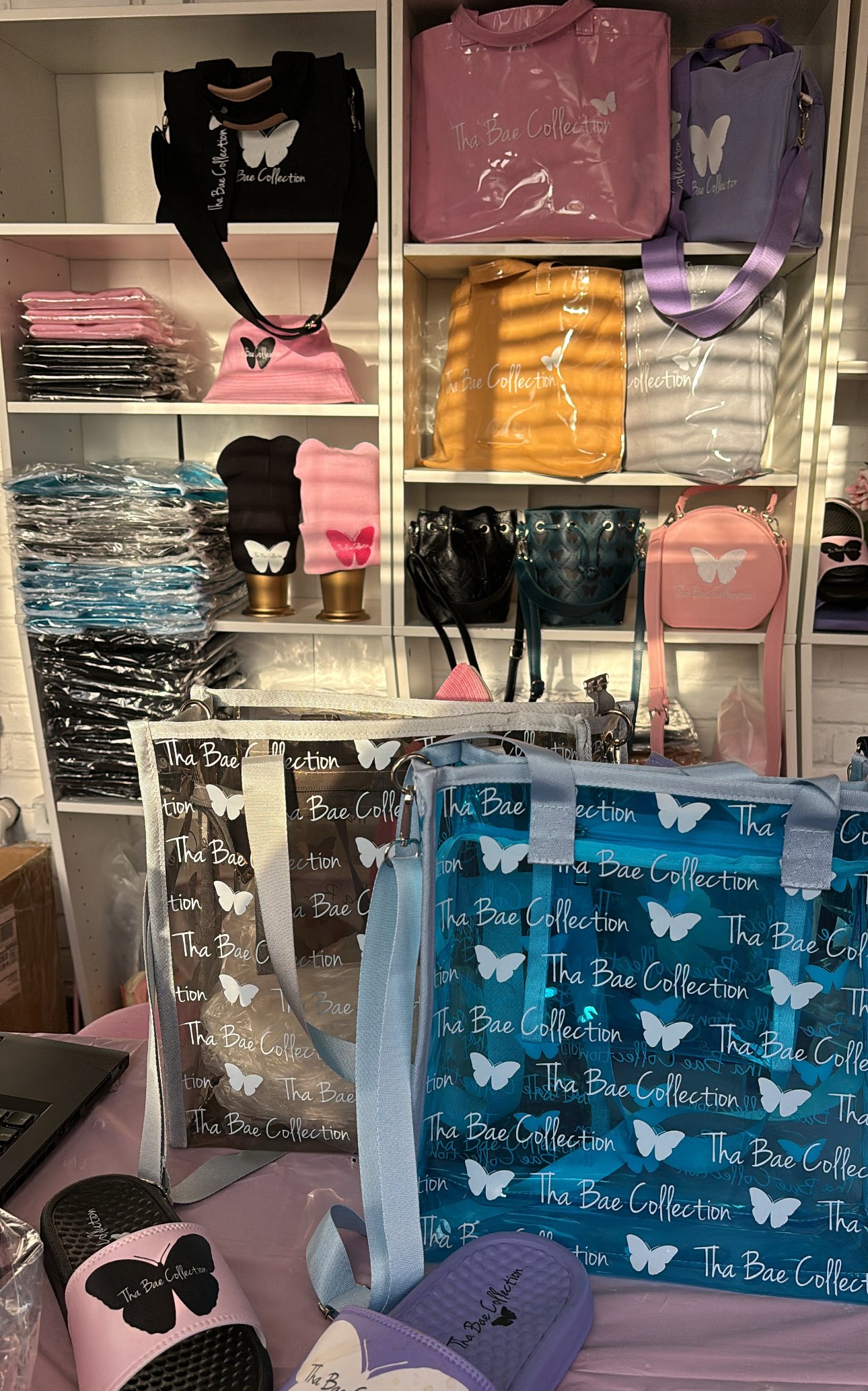 Medium Tote Outside of the bag is hard clear inside the bag is cotton